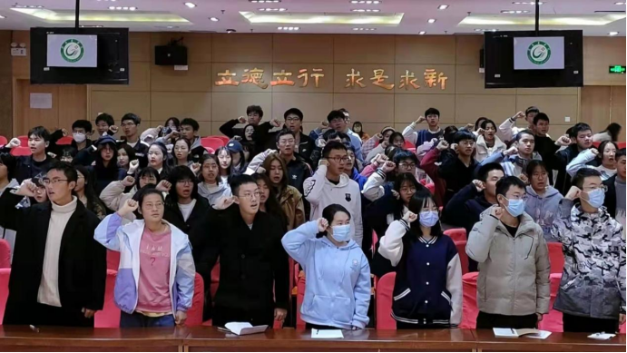 培训开始,心理委员代表发言,并带领全体心理委员宣誓。